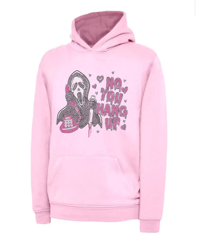 Introducing our "No You Hang Up" Ghost Face Hoodie, now in dazzling rhinestones. This hoodie pays homage to classic horror with a striking design featuring the Ghost Face character, meticulously crafted with shimmering rhinestones for a glamorous twist. Perfect for fans of horror and...- $75.00