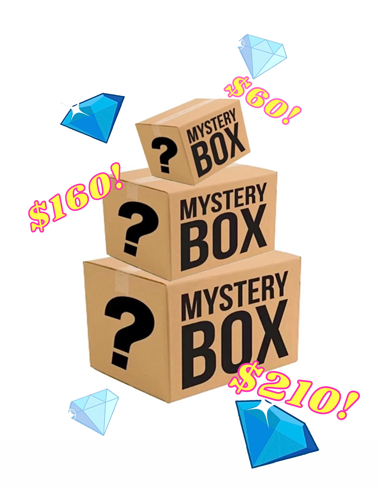Pick your mystery box! 3 options available and all three are filled with bling! All 3 sizes have so many favorites, the larger the box the bigger the goodies! You won’t believe the things you get with our value mystery box prices! Pick and see what you can get!