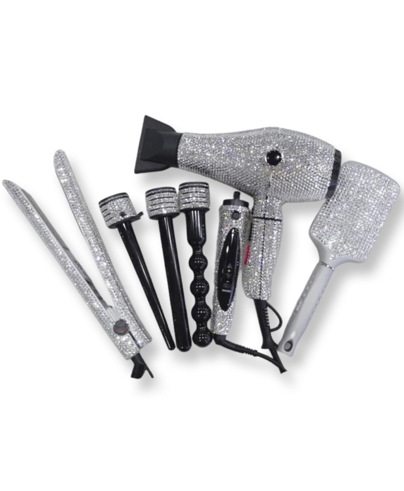 Glam Hair Tools Set! Comes with our crystalized hair iron, curling wands, dryer and brush!