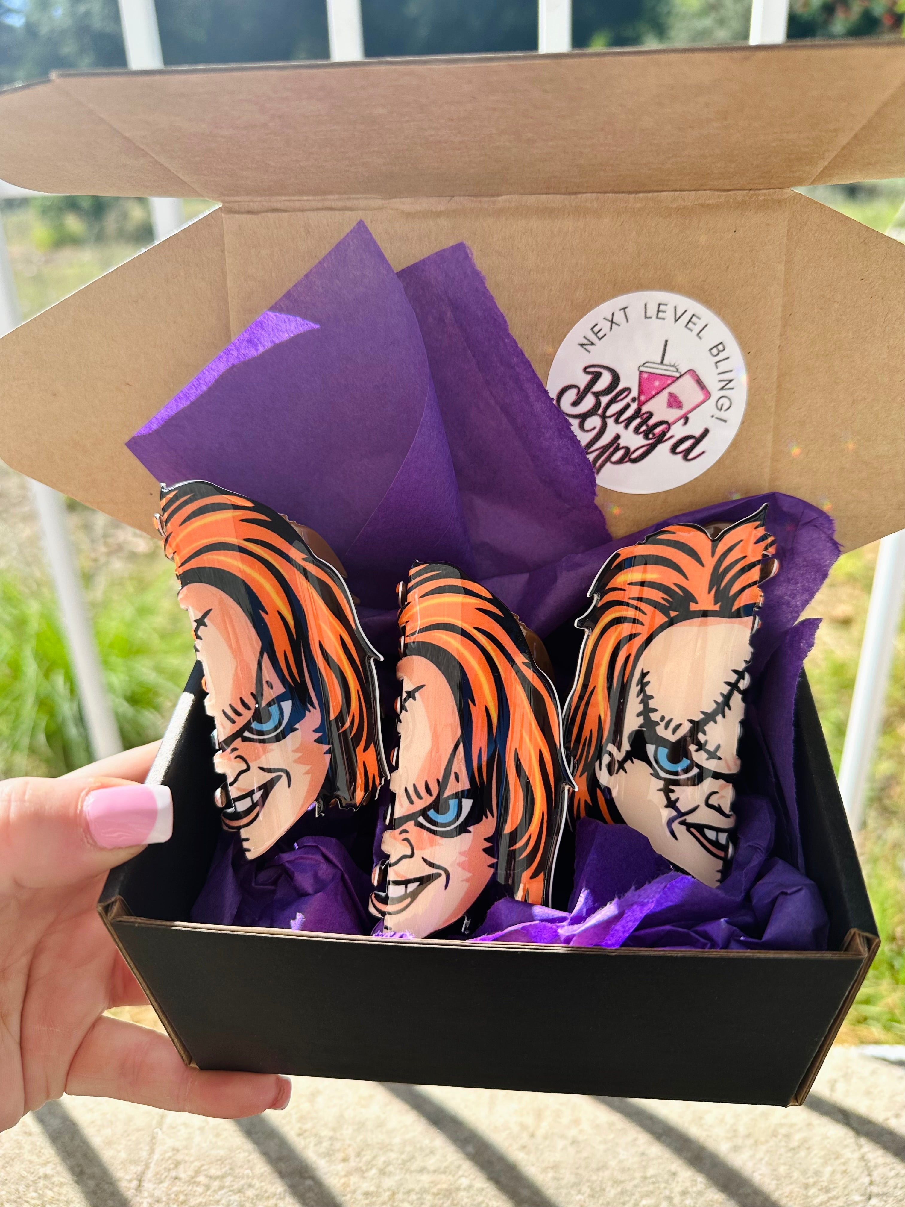 CHUCKz!! Hair claw clip for all chucky lovers! Tis the season to show off all your spooky accessories with this hair clip! Even for year round, this one of a kind hair clip says it all! or should I say SCREAMS it all! 🎃