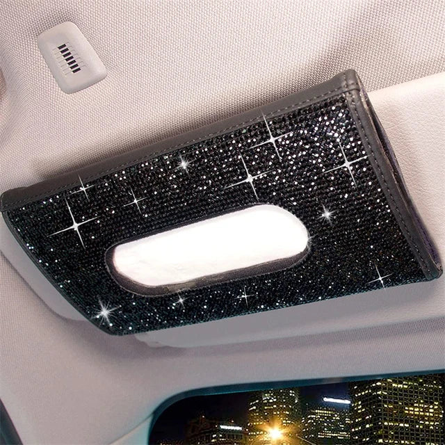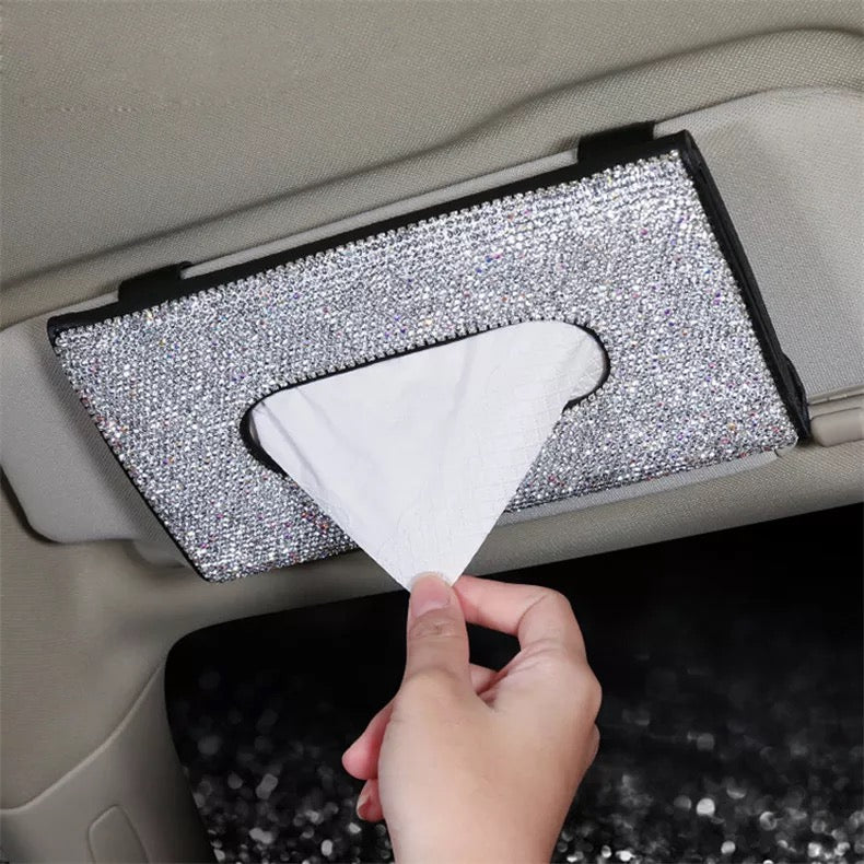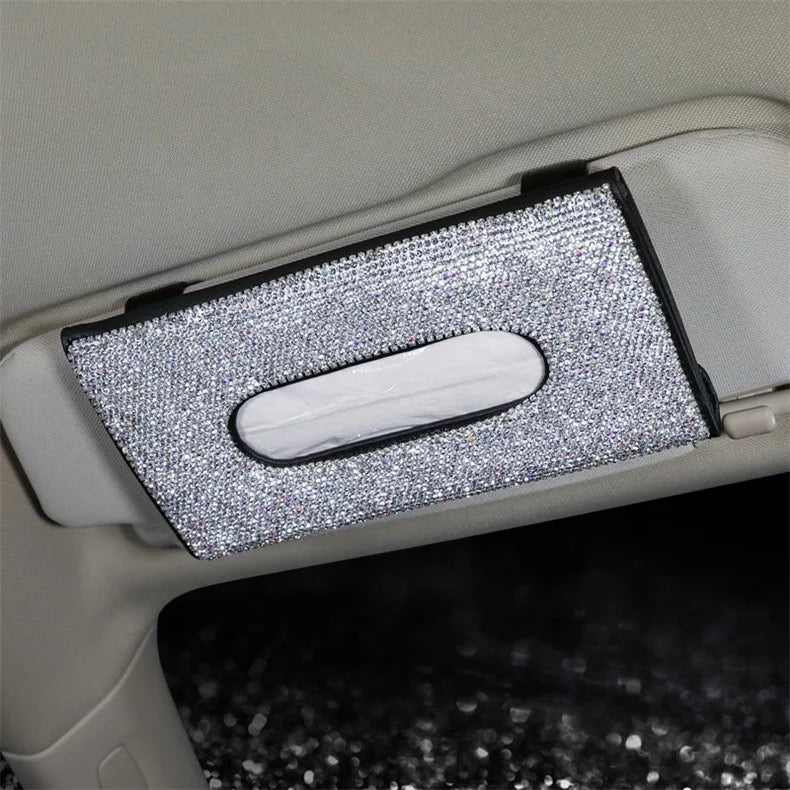 Introducing our Crystal Bling Tissue Visor—a fusion of practicality and luxury for your car interior. Covered with shimmering crystals, this visor elegantly houses tissues, keeping them within easy reach while adding a touch of glamour to your daily drive. Perfectly designed to complement any vehicle, it combines convenience with eye-catching aesthetics, ensuring you drive in style with every essential at hand.
