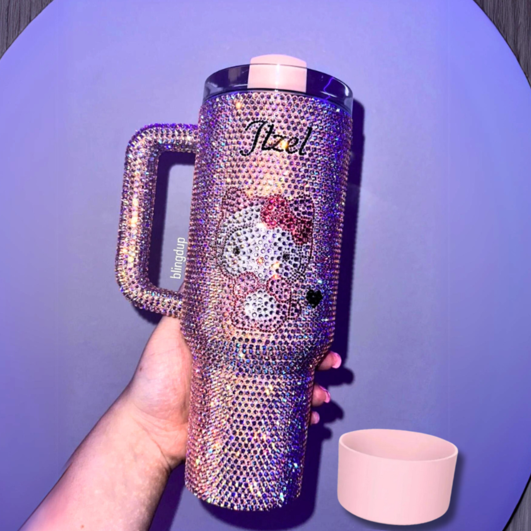 💎 Custom bling 30 oz/40 oz tumbler with handle covered in bling! Using small size crystals to fill the entire tumbler - Pick your favorite colors and add a name or design! Color chart available for reference!