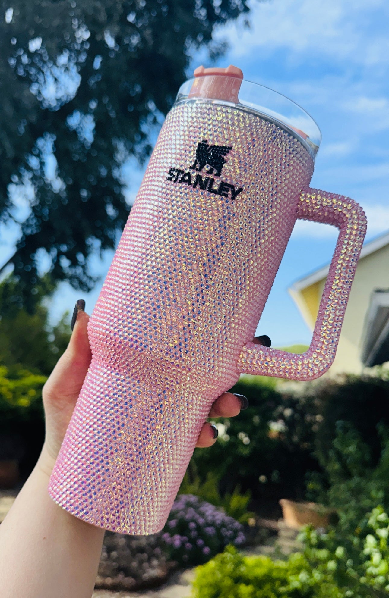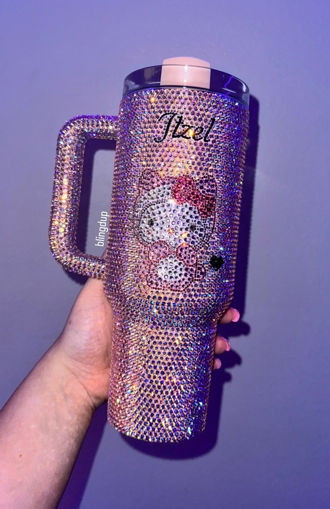 Custom bling 30 oz/40 oz tumbler with handle covered in bling! Using small size crystals to fill the entire tumbler - Pick your favorite colors and add a name or design! Color chart available for reference!