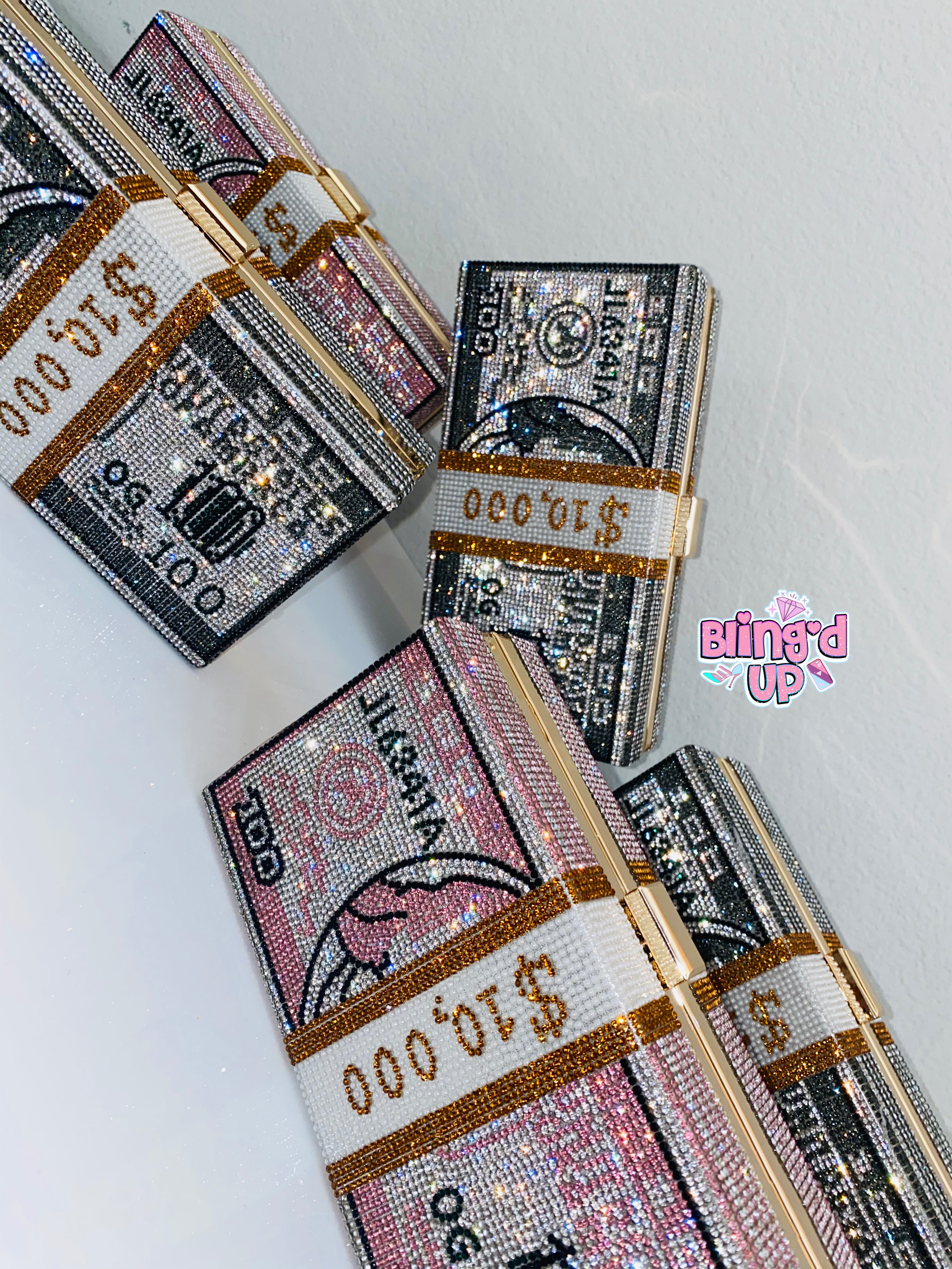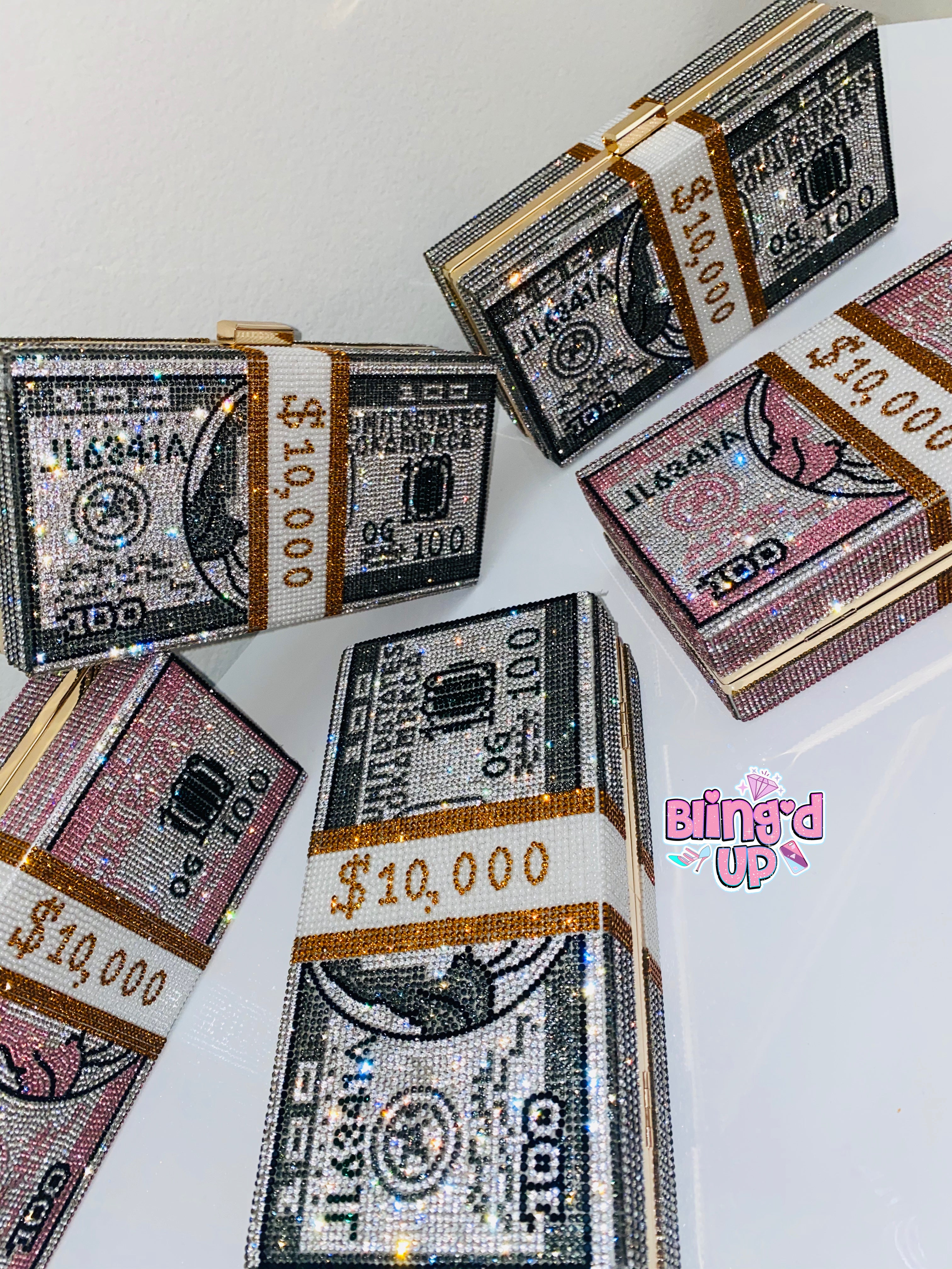 It is finally here! Super sparkly covered in tiny diamonds for a flawless finish! Walk around with you 10k showing! Size: 25 cm long and 11cm tall! Fits your phone and all the necessities for a night/day out! Comes with a chain to throw over your shoulder OR hold it like a clutch!