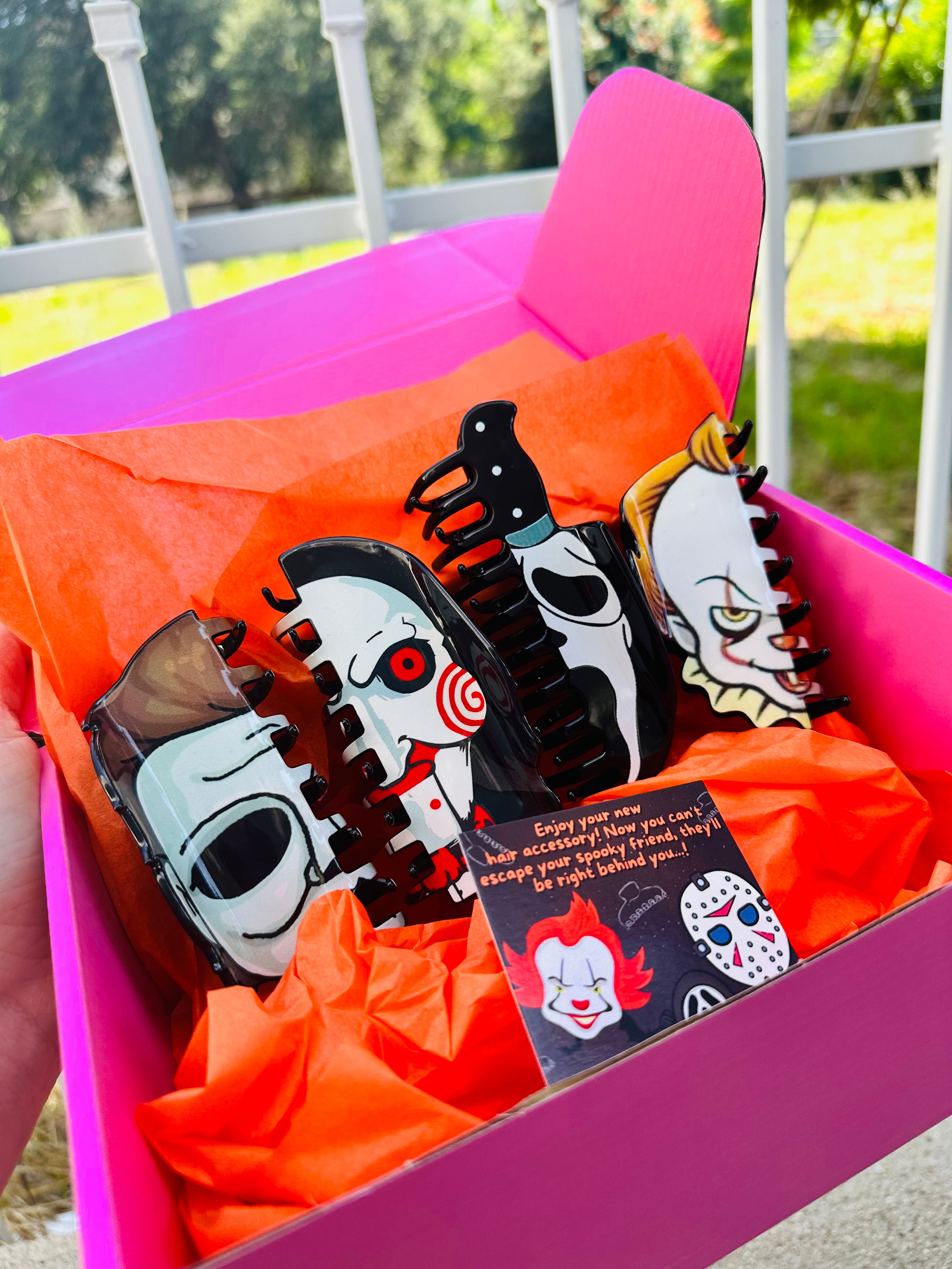 No other way to show off you spooky spirit with the bundle pack of ALL your favorite villains! Comes with GHOST FACE, MICHAEL MYERS, IT AND JIGSAW!