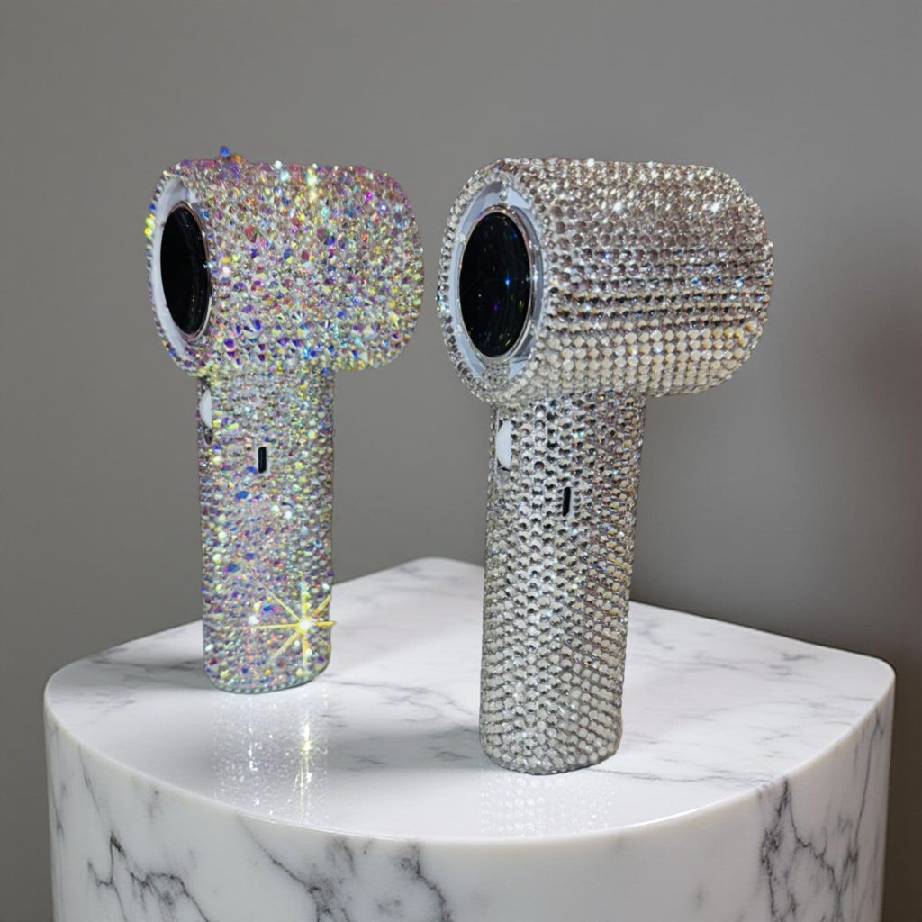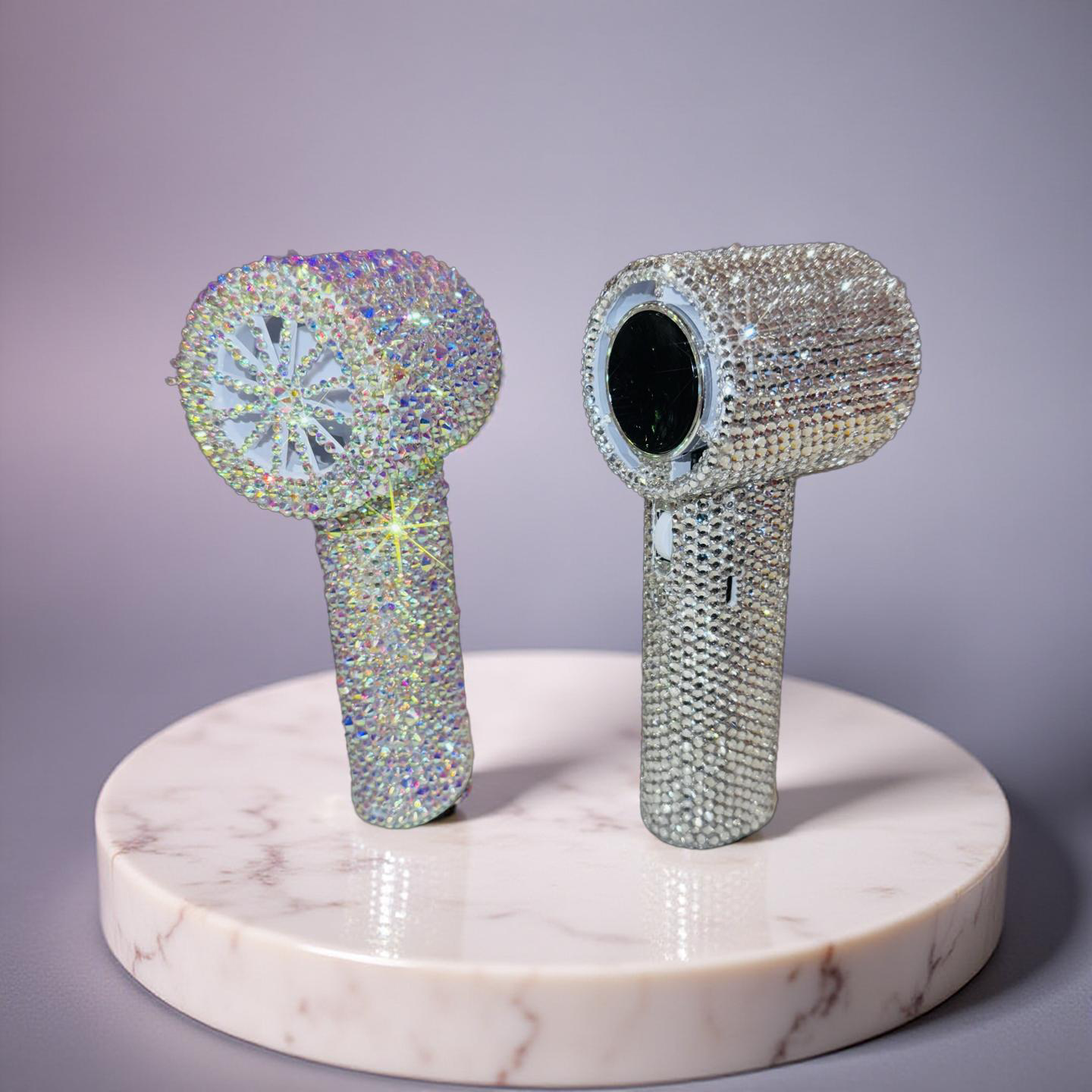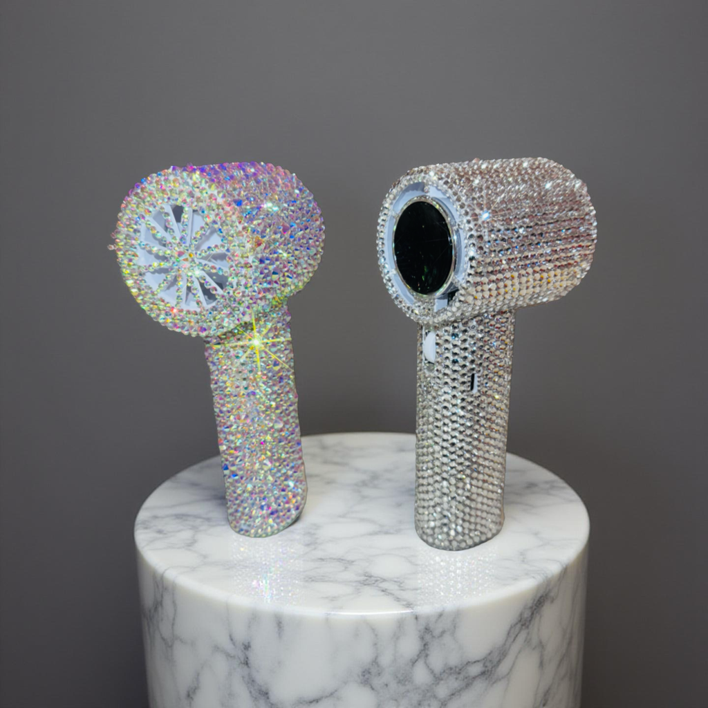 Stay cool in style with the Ice-Tech Crystal Hand Fan! This high-tech hand fan not only keeps you cool with a powerful breeze, but also adds a touch of glamour with its bedazzled design. Perfect for hot summer days or special events, it's a must-have accessory for anyone looking to beat the heat in style. Size 6.5 inches / fits pacifically in any bag Perfect for on the go