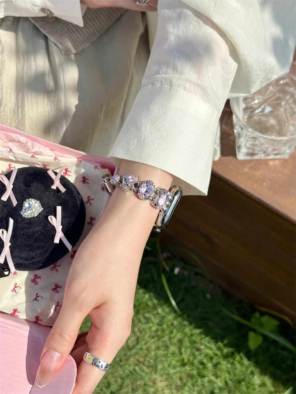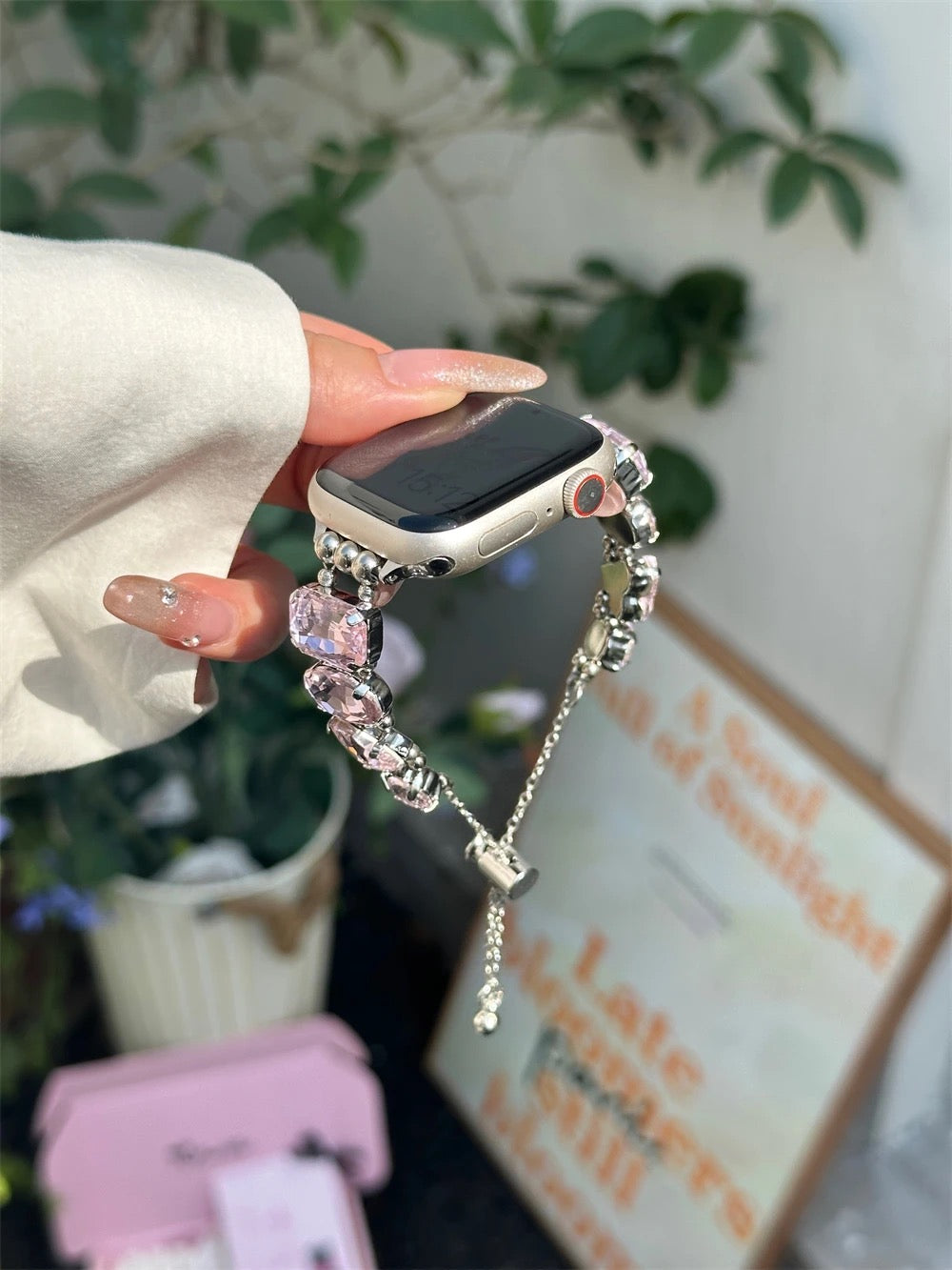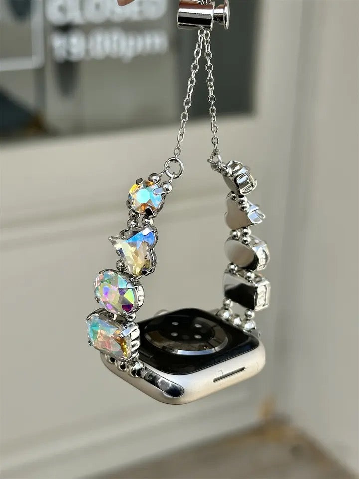 Introducing the Iconz Bling Apple Watch Band – the ultimate accessory to elevate your smartwatch style. Designed for those who love to make a bold fashion statement, this watch band features oversized links crafted from high-quality, durable materials that offer both comfort and sophistication. The chunky design is adorned with sparkling rhinestones, ensuring that your Apple Watch stands out in any crowd. Perfect for special occasions or everyday glam, the Iconz Bling band seamlessly combines functionality with a touch of luxury. Compatible with all Apple Watch models, it's easy to attach and adjust for a secure, personalized fit. Upgrade your wristwear with the cluster Bling Apple Watch Band and let your style shine.