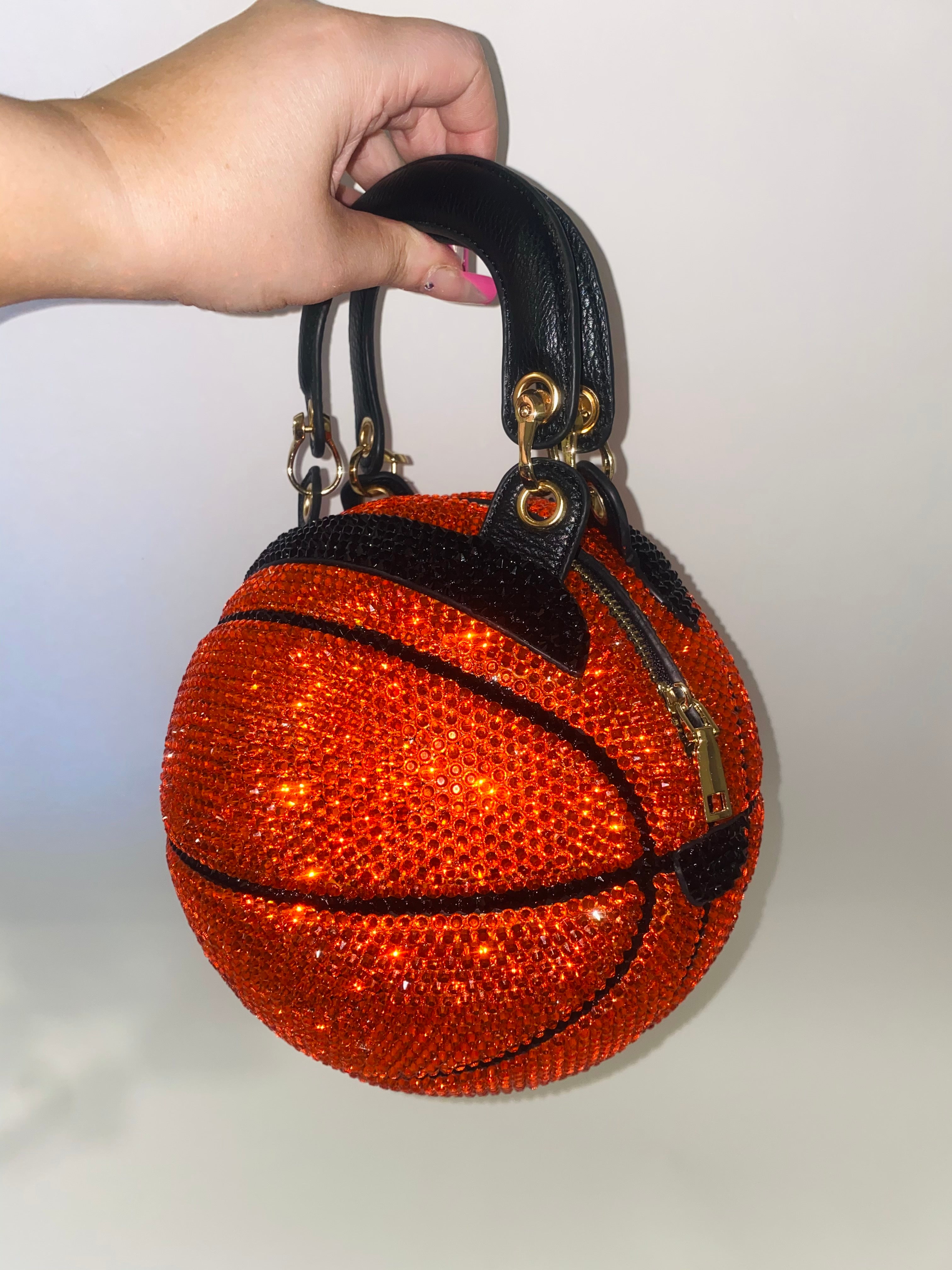 Can we just take a moment to admire this beauty! A BASKETBALL covered in diamonds... TURNED INTO A BAG! Fit your necessities while making the biggest statement to your fashion game! Dribble up and down the night out with this baby! Using complete glass 2058 stones to cover the entire bag Size: approx 27 inches circumference