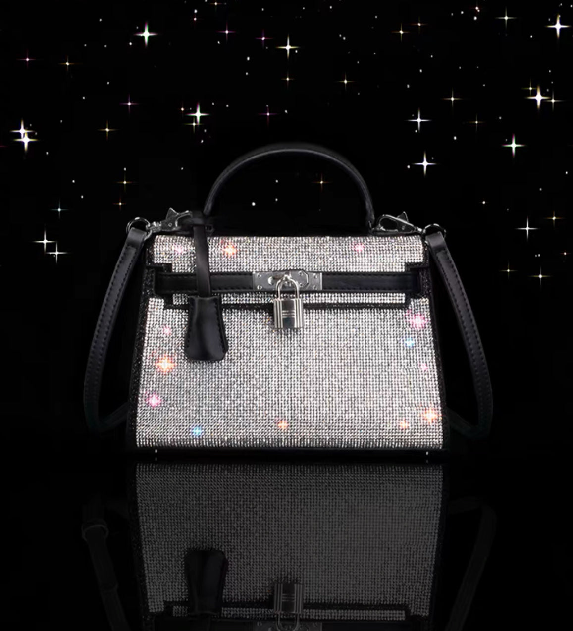Turn heads wherever you go with the Glitz Bag, the ultimate accessory for adding sparkle to your outfit. Covered in shimmering rhinestones that glimmer like diamonds, this handbag is a show-stopping blend of elegance and glam. Its compact design is perfect for your on-the-go essentials, while the detachable chain strap lets you switch between a chic clutch and a stylish crossbody. Ideal for special occasions, parties, or anytime you want to shine, the Glitz Bag is the perfect statement piece for a fashion-forward look.