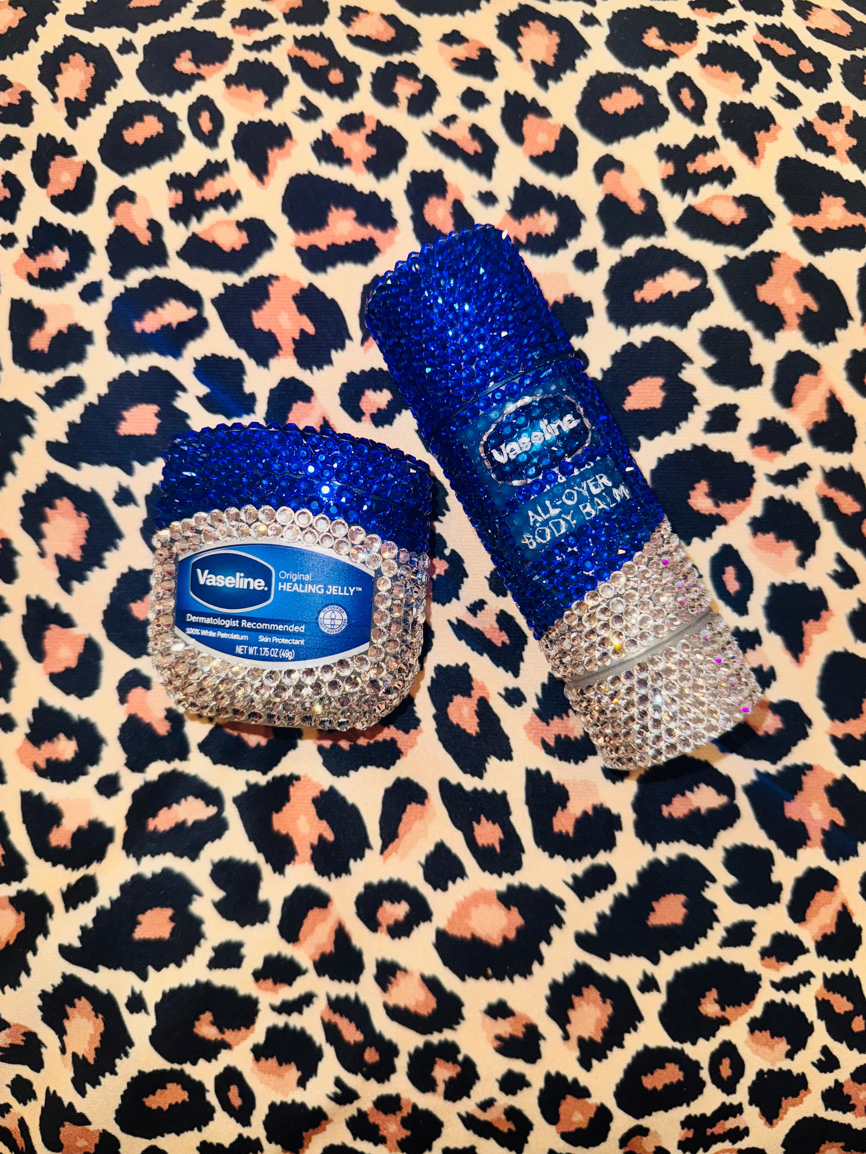 Elevate your skincare routine with a touch of glamour using the Bedazzled Vaseline. This 1.75 oz jar is perfect for on-the-go hydration, combining the classic soothing power of Vaseline with a hint of sparkle. Whether you're tackling dry lips, rough elbows, or other areas in need of TLC, this Vaseline is formulated to lock in moisture and provide long-lasting relief.